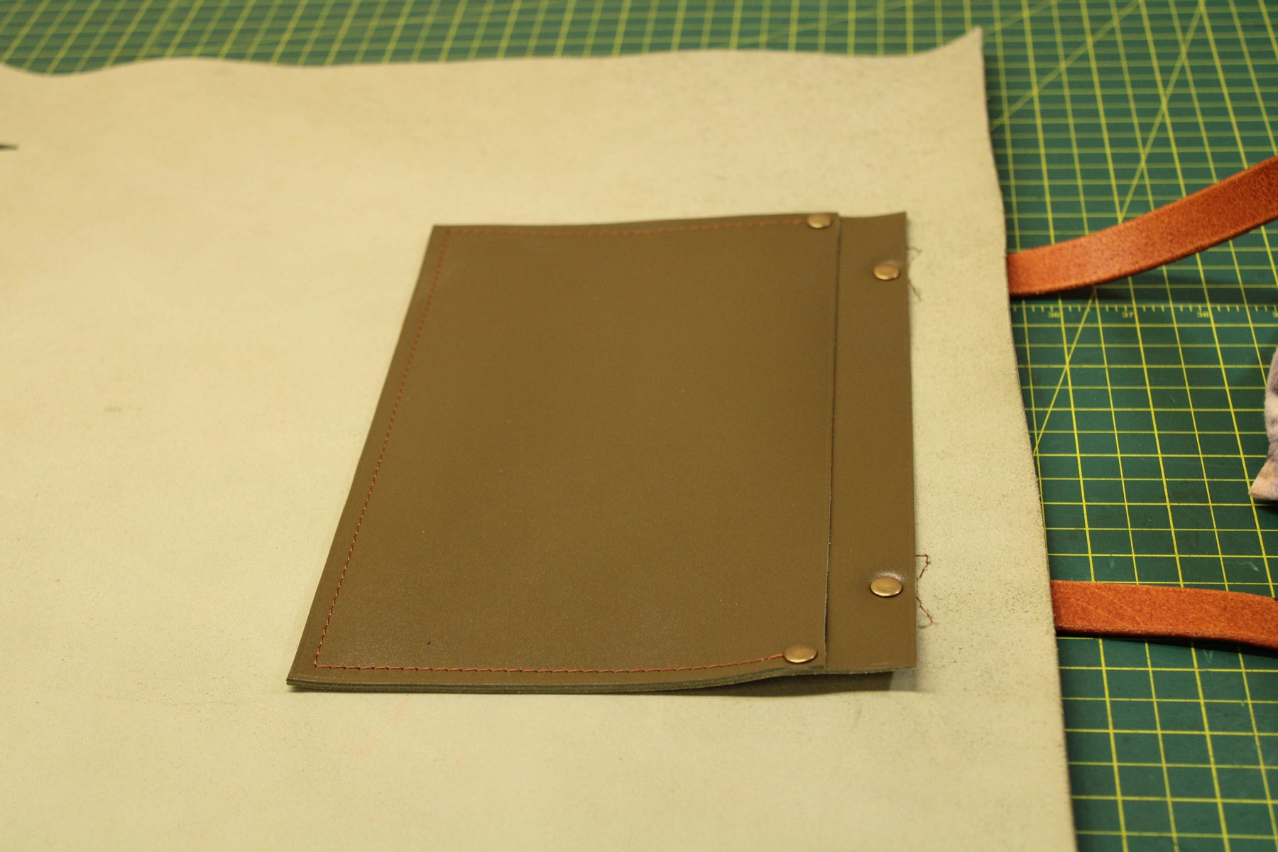I make everything by hand in a micro workshop in the corner of my garage. Everything requires manual work, and most products require hand stitching.